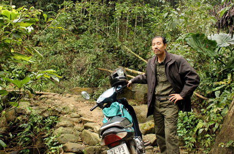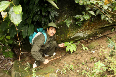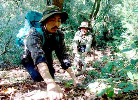 | Lương y Phạm Văn Thanh trong một lần trèo non tìm thuốc |