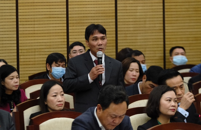 Đại biểu Dương Thị Hằng (Gia Lâm) đặt câu hỏi cho Chủ tịch UBND xã Xuân Đình và Chủ tịch UBND huyện Phúc Thọ về tình trạng khai khác cát trái phép diễn ra ngang nghiên. Bà Hằng đề nghị Chủ tịch xã Xuân Đình trả lời về việc phát hiện, xử lý các cá nhân vi phạm thế nào, đồng thời chất vấn Chủ tịch UBND huyện Phúc Thọ về trách nhiệm của chính quyền địa phương trong việc quản lý nhà nước đối với tình trạng khai thác cát trái phép.
