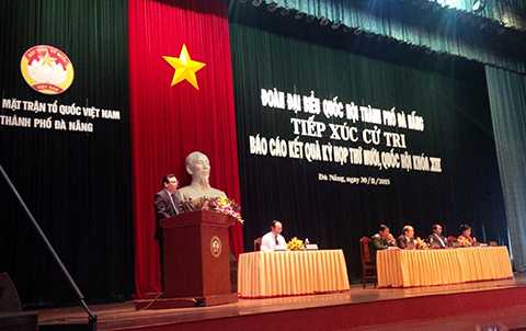 (VTC News) - Sáng 30/11, tại cuộc tiếp xúc cử tri sau Kỳ họp thứ 10, QH khóa XIII của Đoàn ĐBQH TP Đà Nẵng nhiều cử tri đã bày tỏ bức xúc trước cách hành xử của Trung Quốc trên biển Đông trong thời gian qua.
