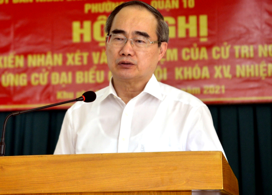 Chiều 3/4, Ủy ban MTTQ Việt Nam phường XV, quận 10, TP.HCM tổ chức hội nghị cử tri để lấy ý kiến nhận xét và tín nhiệm của cử tri tại nơi cư trú đối với ông Nguyễn Thiện Nhân, nguyên Ủy viên Bộ Chính trị, nguyên Bí thư Thành ủy, Trưởng Đoàn đại biểu Quốc hội (ĐBQH) TP.HCM khóa XIV, người ứng cử ĐBQH khóa XV, nhiệm kỳ 2021-2026.