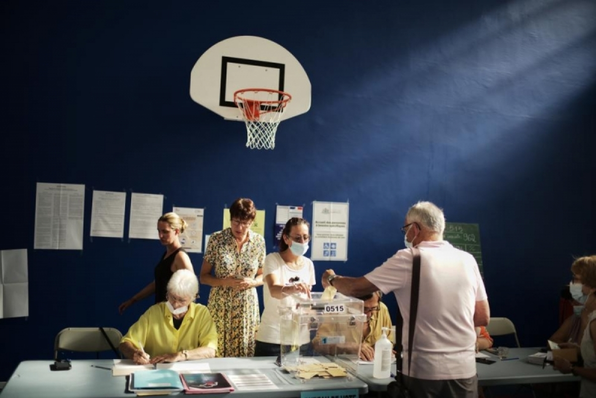 Cử tri Pháp đi bầu tại Marseille sáng 12/6. (Ảnh: Le Monde)