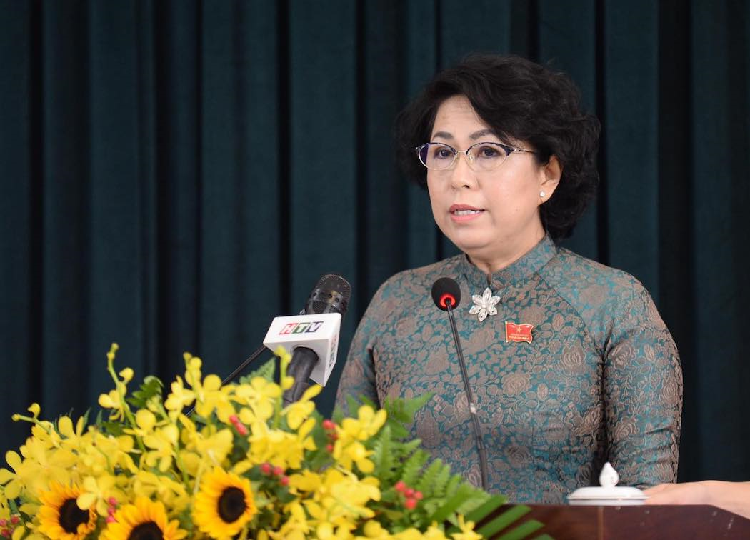 Bà Tô Thị Bích Châu - Chủ tịch Uỷ ban MTTQ Việt Nam TP.HCM phát biểu tại kỳ họp.
