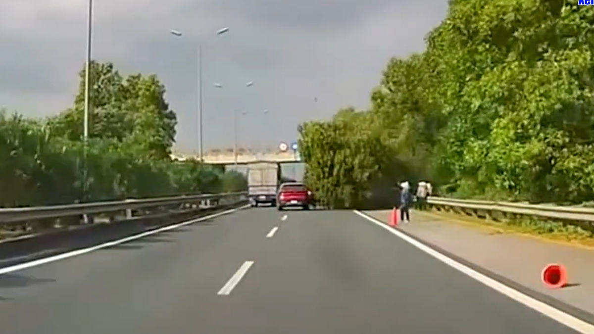 Nhóm người cưa hạ cây trên cao tốc Cầu Giẽ - Ninh Bình không đảm bảo an toàn suýt gây tai nạn.