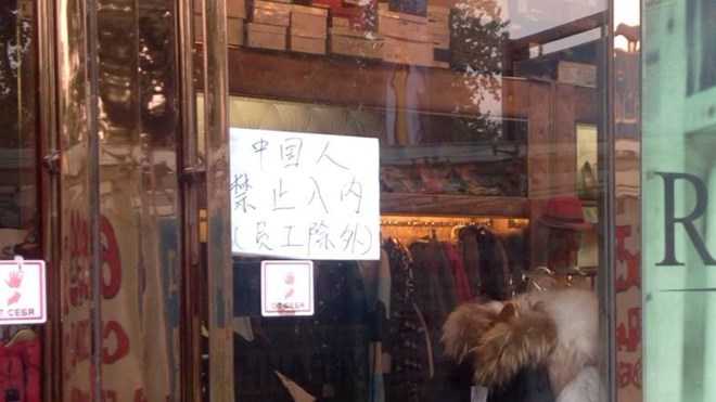 Tấm biển cấm người Trung Quốc được dán ở cửa kính (Nguồn: CCTV)