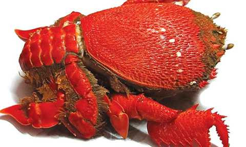 | Vỏ cua màu đỏ hồng hình dáng như loài rùa trông rất bắt mắt. Ảnh: MH. |