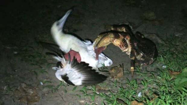 Con cua dừa làm thịt con chim biển. (Ảnh: Coconut Crab Conservation)