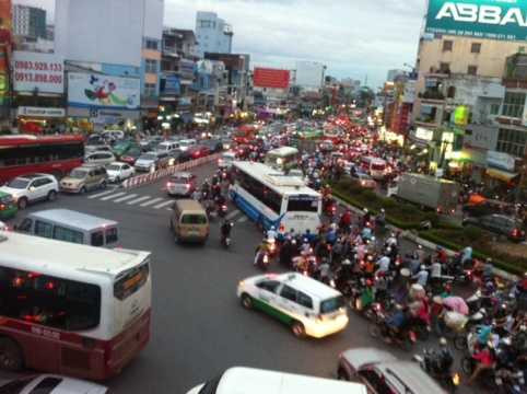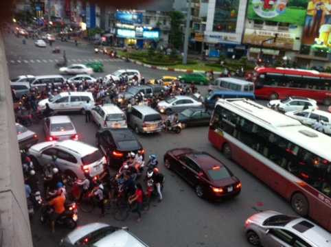 Dòng người và xe nối đuôi nhau, nhích từng chút một, dài đến vài km. Toàn bộ các hướng đổ về nút giao thông này đều ken chặt người và xe. Tất cả đều ‘mạnh ai, nấy đi’ mà không theo bất cứ một luật lệ giao thông nào.