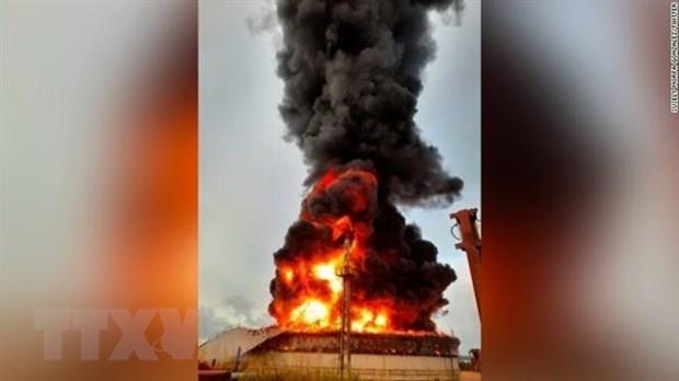 Khói lửa bốc ngùn ngụt tại hiện trường bể chứa dầu thô trong khu công nghiệp gần thành phố Matanzas, Cuba ngày 5/8. (Ảnh: CNN/TTXVN)