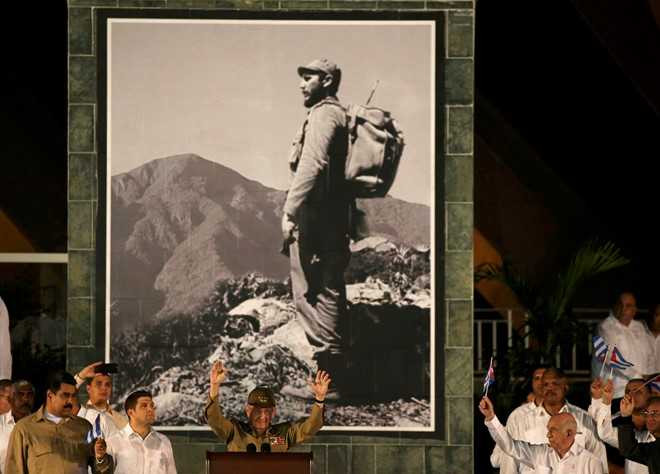 Chủ tịch Cuba Raul Castro trước bức ảnh Fidel Castro trong lễ tưởng niệm cố lãnh tụ diễn ra tại Santiago de Cuba hôm 3/12. Ảnh: Reuters.