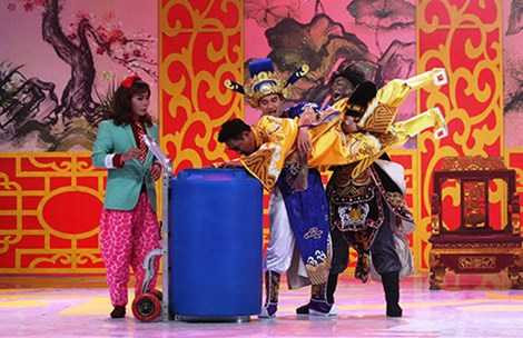 | Chương trình Táo quân luôn nhận được sự quan tâm của khán giả truyền hình. Trong ảnh: Một cảnh của Táo quân 2014. Ảnh: VTV |