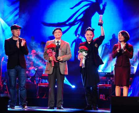 | Tùng Dương và nhạc sỹ Doãn Nho nhận giải Bài hát của năm. |
