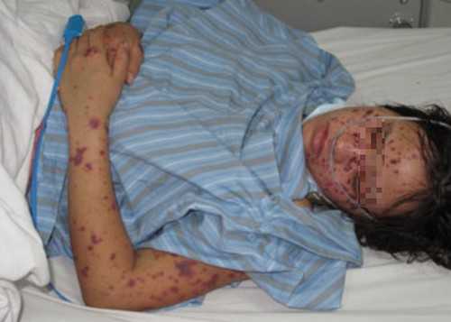 | Một bệnh nhân mắc viêm não mô cầu. Ảnh VNE |