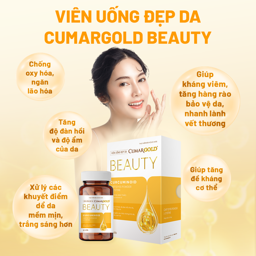 Viên uống đẹp da CumarGold Beauty - Hỗ trợ chống oxy hoá, cải thiện khô da, nhăn da