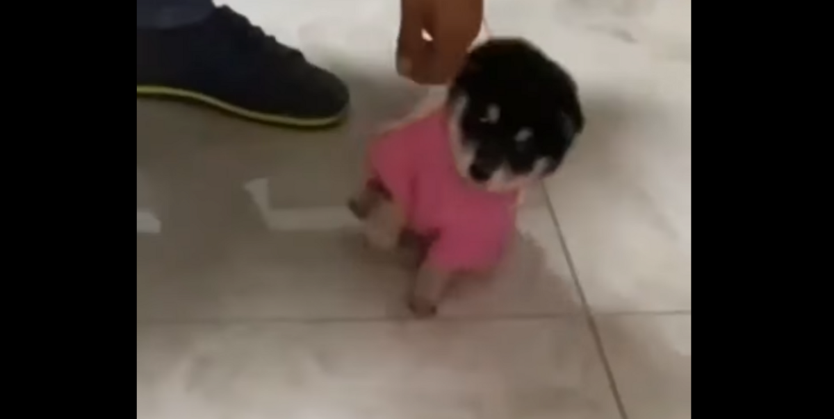 Chưa quen với chiếc áo mới, cún con ngã lăn đùng tứ phía khi được thả ra giữa nhà khiến mọi người bật cười.