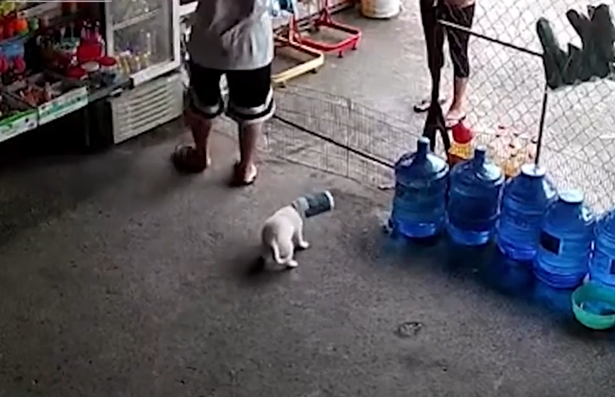 Nghịch ngợm nên kẹt đầu vào lon nước, chú cún lâm vào cảnh có mắt không nhìn thấy đường và trông khá hoang mang, rất may là chú nhanh chóng được giúp đỡ.