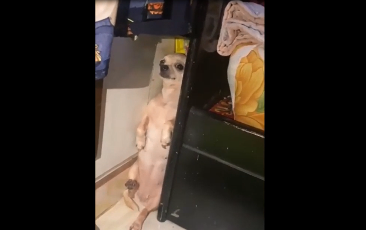 Mặc cho cả nhà phát hiện, chó cưng vẫn giữ nguyên tư thế bất động khiến cả nhà được phen cười đau bụng.