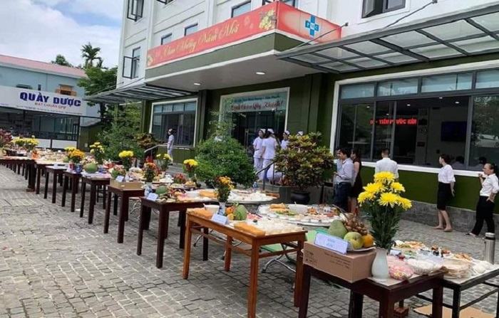 12 mâm cỗ cúng tại Bệnh viện Thái Bình Dương Tiên Phước. Ảnh Fb