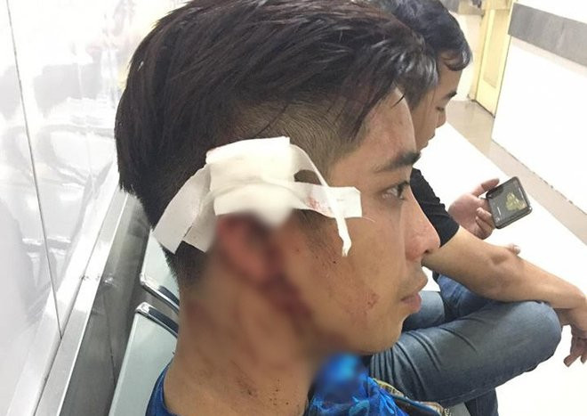 Anh T.K.D bị chấn thương nặng vùng đầu, rách sụn tai. (Ảnh: GĐCC)