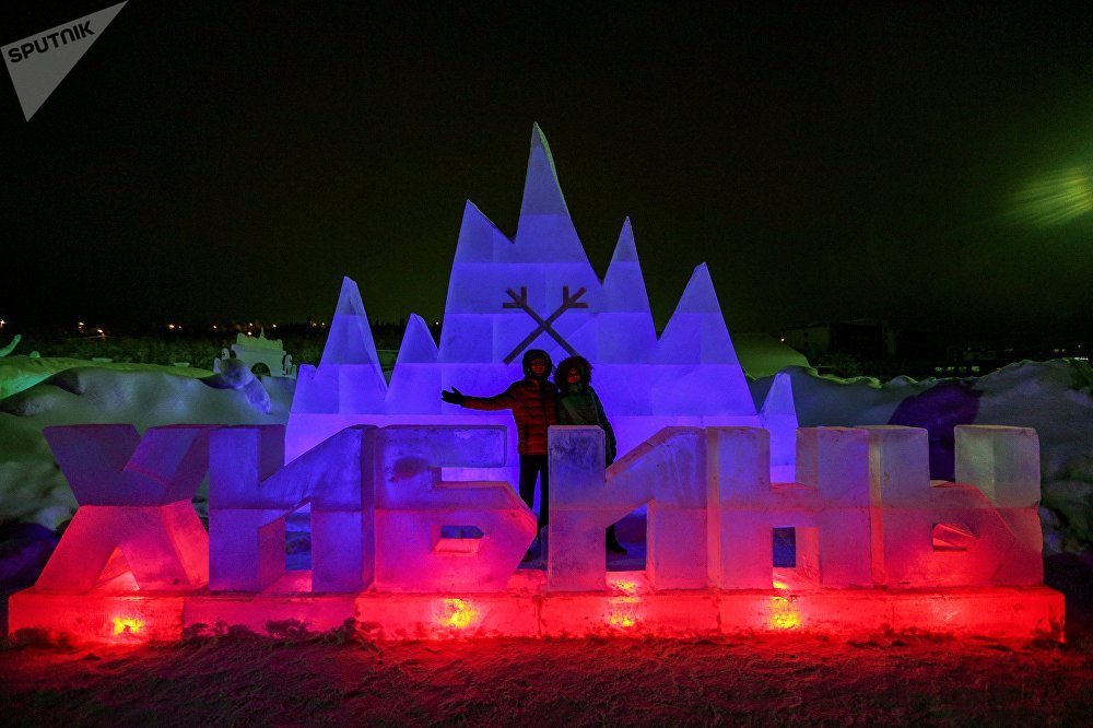 Từ năm 2008, thành phố Kirovsk, Murmansk ở vùng cực Bắc nước Nga tổ chức đón năm mới bằng cách tạo nên những cung điện băng và một làng tuyết ở chân núi Khibiny.