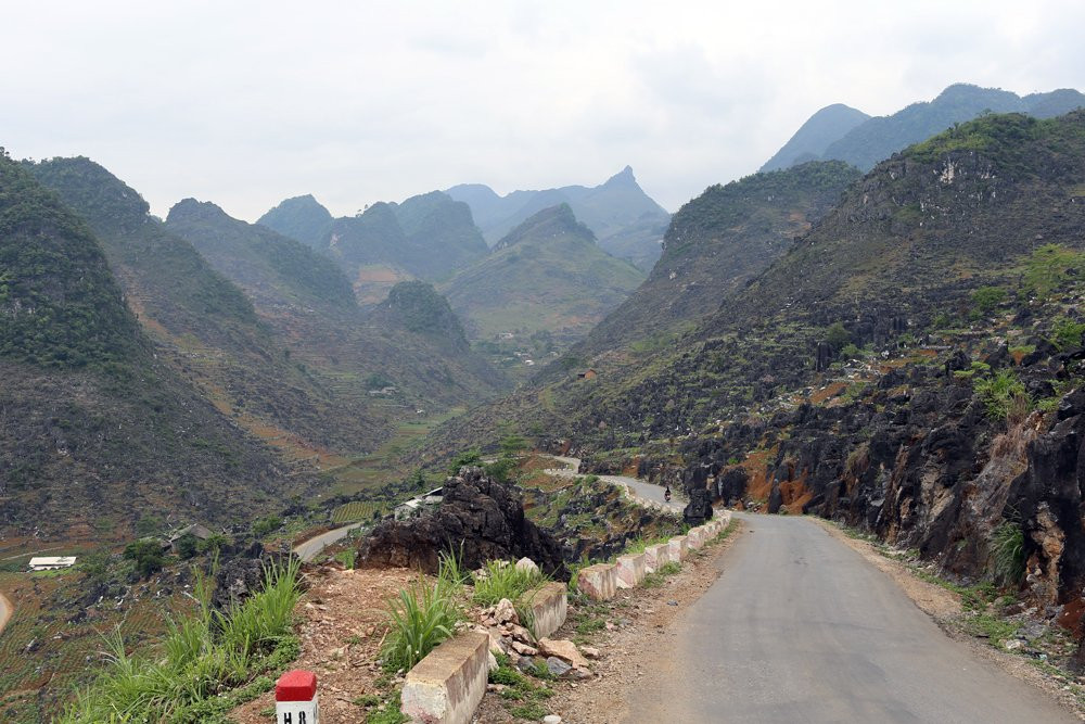 Đường Hạnh Phúc ở thị trấn Mèo Vạc, huyện Mèo Vạc, tỉnh Hà Giang. Đây sẽ là đích đến của cuộc thi bán chạy bán Marathon mở rộng với tên gọi "Chạy trên cung đường Hạnh Phúc" lần thứ nhất năm 2017, được tổ chức vào sáng mai (30/4/2017). (Ảnh: Quang Minh)