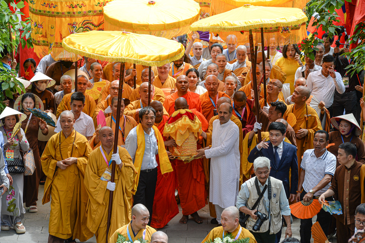Lễ cung rước xá lợi Phật diễn ra trong không khí trang nghiêm và xúc động.