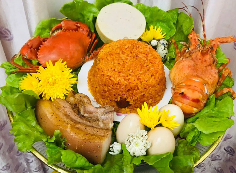 Tương tự, mâm cỗ cúng giá 1,5-2 triệu đồng cũng vậy. Trong set mâm cỗ này sẽ có tôm hùm, cua Cà Mau, thịt lợn quay, xôi gấc, giò lụa và trứng. Giá mâm cỗ này dựa vào trọng lượng tôm hùm và cua khách đặt lớn hay nhỏ. Tôm cua càng lớn, giá mâm cỗ càng đắt đỏ.