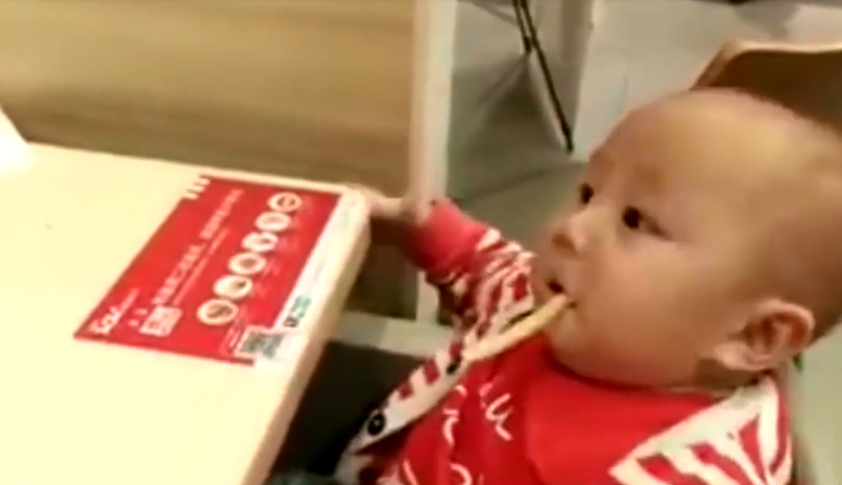 Em bé lục nồi tìm đồ ăn, cơm dính đầy mặt
