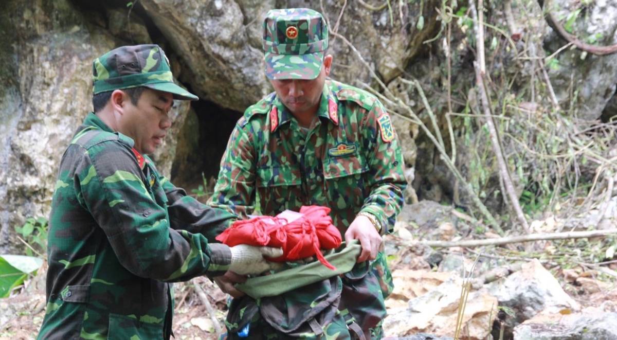 Một liệt sĩ được tìm thấy, chỉ còn nhúm xương nhỏ.