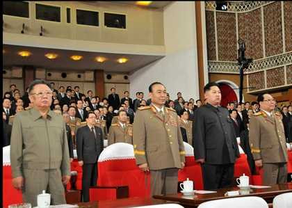 | Ông Ri Yong-Ho (đầu tiên bên trái) cùng nhà lãnh đạo Kim Jong-un trước linh cữu của cố Chủ tịch Kim Jong-il |
