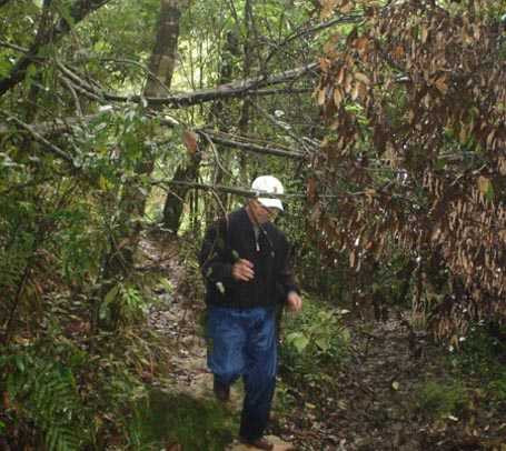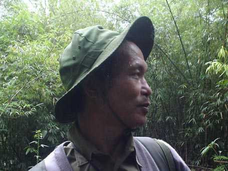 | Ông Lê Trọng Hùng trên đường dẫn tác giả tìm "người rừng" Trần Ngọc Lâm |