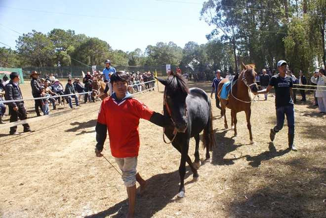 Kiểm tra ngựa chuẩn bị đua. Đây là những chú ngựa kéo xe khách trong các khu du lịch của Đà Lạt. |