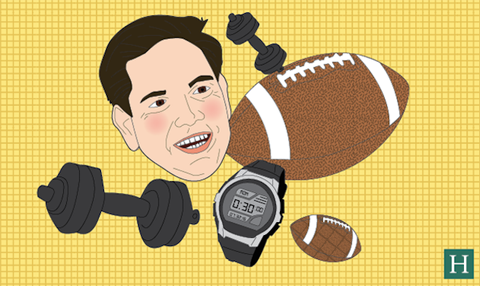 Rubio duy trì thói quen tập thể dục của mình suốt chiến dịch vận động. Ông "làm mọi việc để tăng nhịp tim trong vòng 30 phút" mỗi khi thức giấc. Thời đại học, ông dành một năm chơi bóng bầu dục và củng cố tình yêu thể thao bằng việc lấy người vợ xuất thân từ đội cổ vũ. Mỗi đêm, Rubio ngủ 6 tiếng.