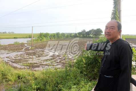 | Ông Ba Lê chỉ cánh đồng cạnh cầu sắt Vĩnh Thông, nơi bọn Pol Pot giết hại 800 người |