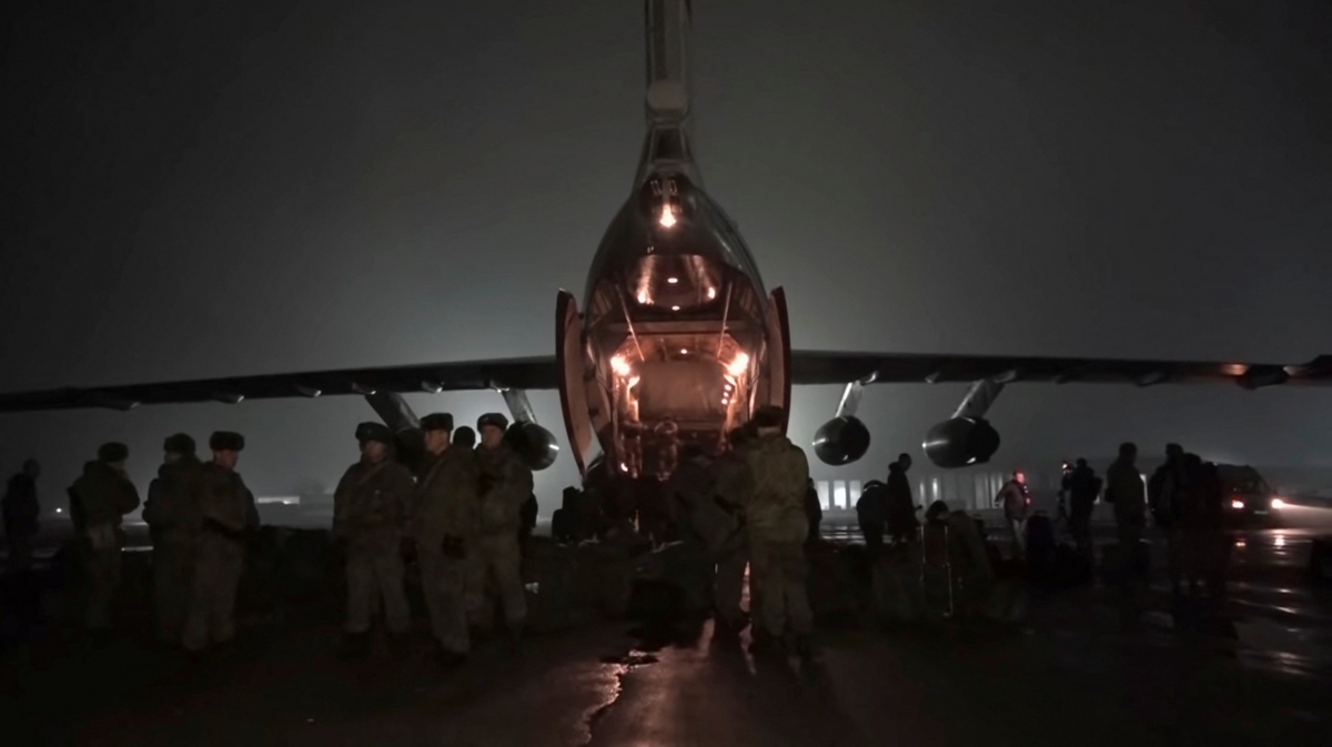 CSTO là liên minh quân sự gồm 6 thành viên Nga, Belarus, Kazakhstan, Kyrgyzstan, Tajikistan, và Armenia. Đây là lần đầu tiên kể từ khi thành lập năm 1994, các nước CSTO gửi quân can thiệp vào tình hình nội bộ ở một quốc gia thành viên. CSTO từng 2 lần từ chối can thiệp khi một nước thành viên gửi đề nghị hỗ trợ, gồm Kyrgyzstan năm 2010 và Armenia năm 2021. (Ảnh: Reuters)