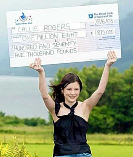 Cô Callie Rogers người Anh từng trúng xổ sổ với giải thưởng 1,9 triệu bảng năm 16 tuổi (7/2003). Tuy nhiên, với cách tiêu tiền không tiếc đã khiến cô sớm phải chịu cảnh rỗng túi. Được biết, cô mua 4 căn nhà với tổng số tiền 550.000 bảng và chi 200.000 bảng cho các kỳ nghỉ xa xỉ.