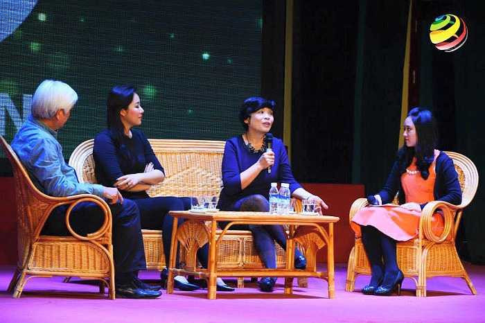 Ngô Phương Lan cùng các vị khách mời, đại diện cho nhiều ngành nghề, nhiều thế hệ trong một cuộc tọa đàm.