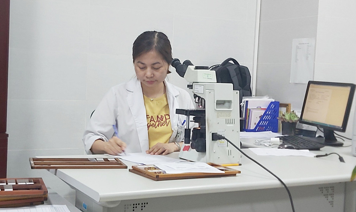 Một ngày đầu năm 2024, trong phòng làm việc khoa Giải phẫu bệnh, Bệnh viện Bạch Mai, chị Vũ Thị Nhung quay cuồng với công việc chuyên môn cùng các đồng nghiệp khác. Sức khoẻ chị đã ổn định, chỉ hôm nào thời tiết thay đổi chị dễ bị viêm đường hô hấp do từng tổn thương nặng sau đám cháy kinh hoàng tháng 9 năm ngoái.