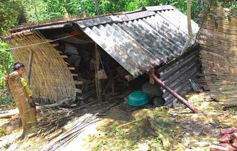 Vượt qua con đường mòn chông chênh đầy sỏi đá chúng tôi mới có thể lên tới nhà của vợ chồng cụ Kênh đang ở hiện giờ. Gọi là nhà nhưng thực ra đó chỉ là một túp lều tạm đơn sơ nằm ngay ven rừng, chẳng có đồ đạc gì quý giá ngoài chiếc chõng tre đặt giữa nhà.