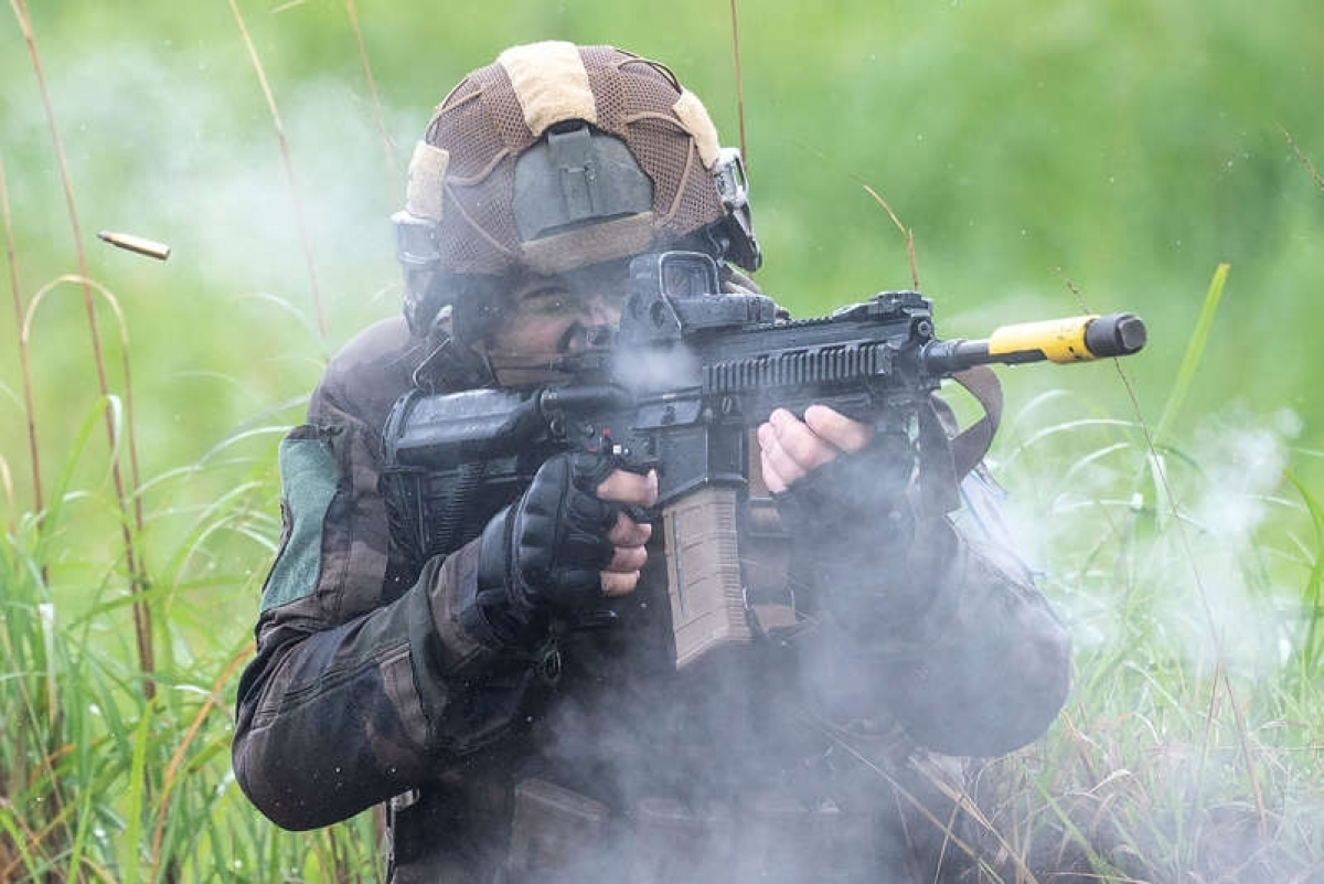 Một binh lính Pháp tham gia cuộc tập trận giữa Lực lượng Phòng vệ Nhật Bản, quân đội Pháp và Thủy quân lục chiến Mỹ tại tỉnh Miyazaki, Nhật Bản ngày 15/5. (Ảnh: AP)