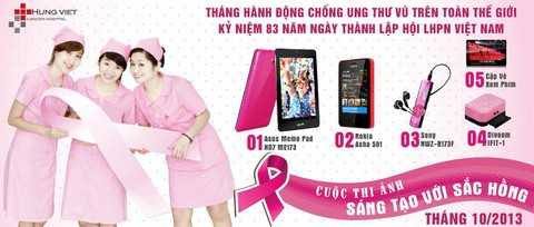 Tháng 10/2013, Bệnh viện Ung bướu Hưng Việt tổ chức cuộc thi ảnh online “Sáng tạo với sắc hồng” nhằm hưởng ứng tháng hành động chống ung thư vú trên toàn thế giới và kỷ niệm 83 năm ngày thành lập Hội LHPN Việt Nam (20/10/1930 – 20/10/2013).
