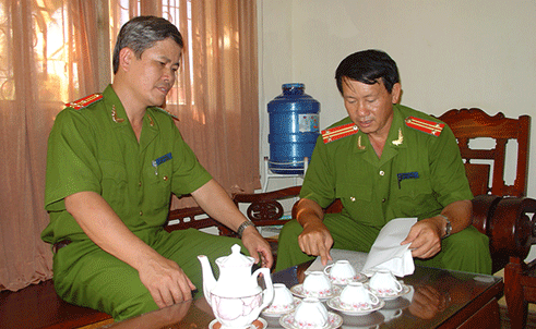 | Phó giám thị Trại giam Gia Trung (trái) và trung tá Hoàng Văn Tân kể lại chuyện truy bắt tội phạ |