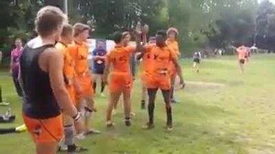 Trong giải đấu bóng bầu dục tại Bỉ, đội Hà Lan đã gây ấn tượng mạnh bằng rất nhiều kiểu bắt tay độc đáo và hài hước.