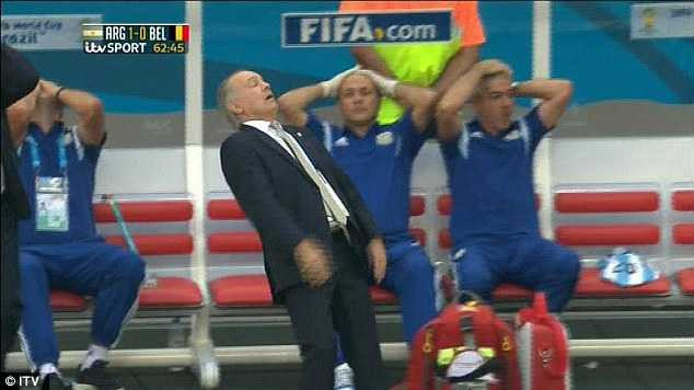 Xem xong tình huống ghi bàn hụt của Higuain , HLV Sabella rất tiếc nuối và ông suýt nữa ngã ngửa người ra phía sau. Bức ảnh này đã được các Fans hâm mộ chế thành các bức ảnh vui nhộn.