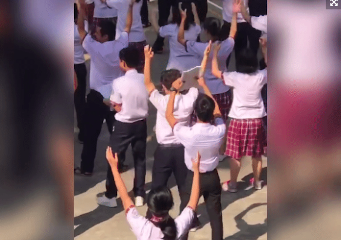 Trong đoạn video, khi các bạn học sinh xung quanh đều đang thực hiện những động tác thể dục thì thanh niên này dường như không hề mảy may quan tâm. Dù tập theo các bạn, nhưng cậu lại tự chuẩn bị thêm cho mình một quyển sách, tranh thủ ôn lại bài trước giờ lên lớp.
