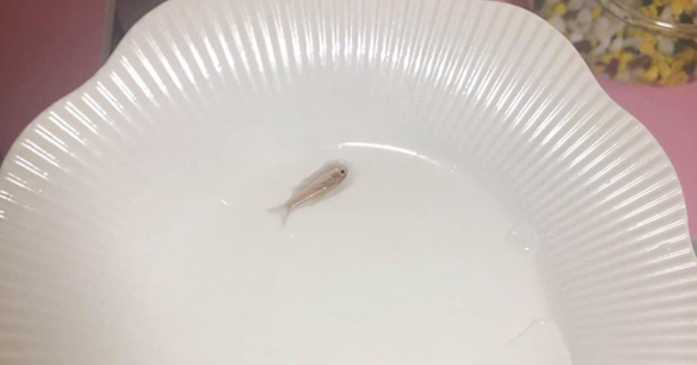 Cá cảnh bé như sợi len, màu sắc nhợt nhạt.
