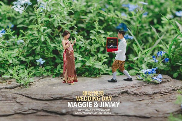Không lựa chọn những cảnh sắc thiên nhiên kỳ thú hay nhấn vào nội dung câu chuyện tình yêu, các bộ ảnh cưới theo phong cách thu nhỏ của Ekkachai gây ấn tượng với người xem bởi sự độc đáo và vui nhộn theo đúng kiểu “không giống ai nhưng ai cũng muốn có”.