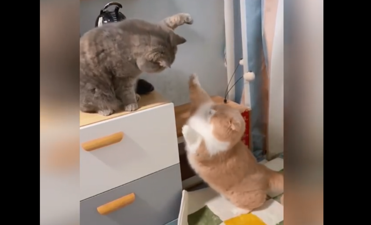Cười trẹo quai hàm xem 2 nàng mèo chân ngắn đánh nhau