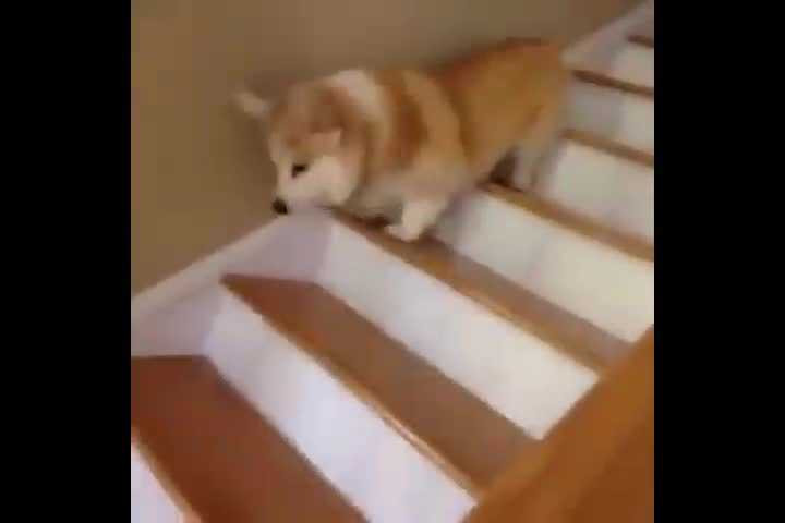 Kiểu xuống cầu thang không giống ai của chú chó corgi khiến người xem cười vỡ bụng.