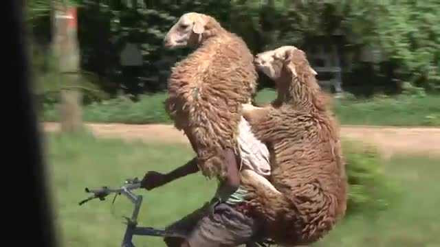 Cười vỡ bụng clip người đàn ông đạp xe chở cừu đi ngắm phố phường