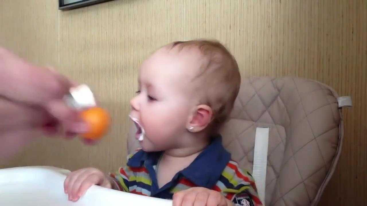 Để 'đối phó' với cậu con trai lười ăn, một ông bố ở Nga đã nghĩ ra cách dùng quả cam để dụ cho cậu bé há miệng.